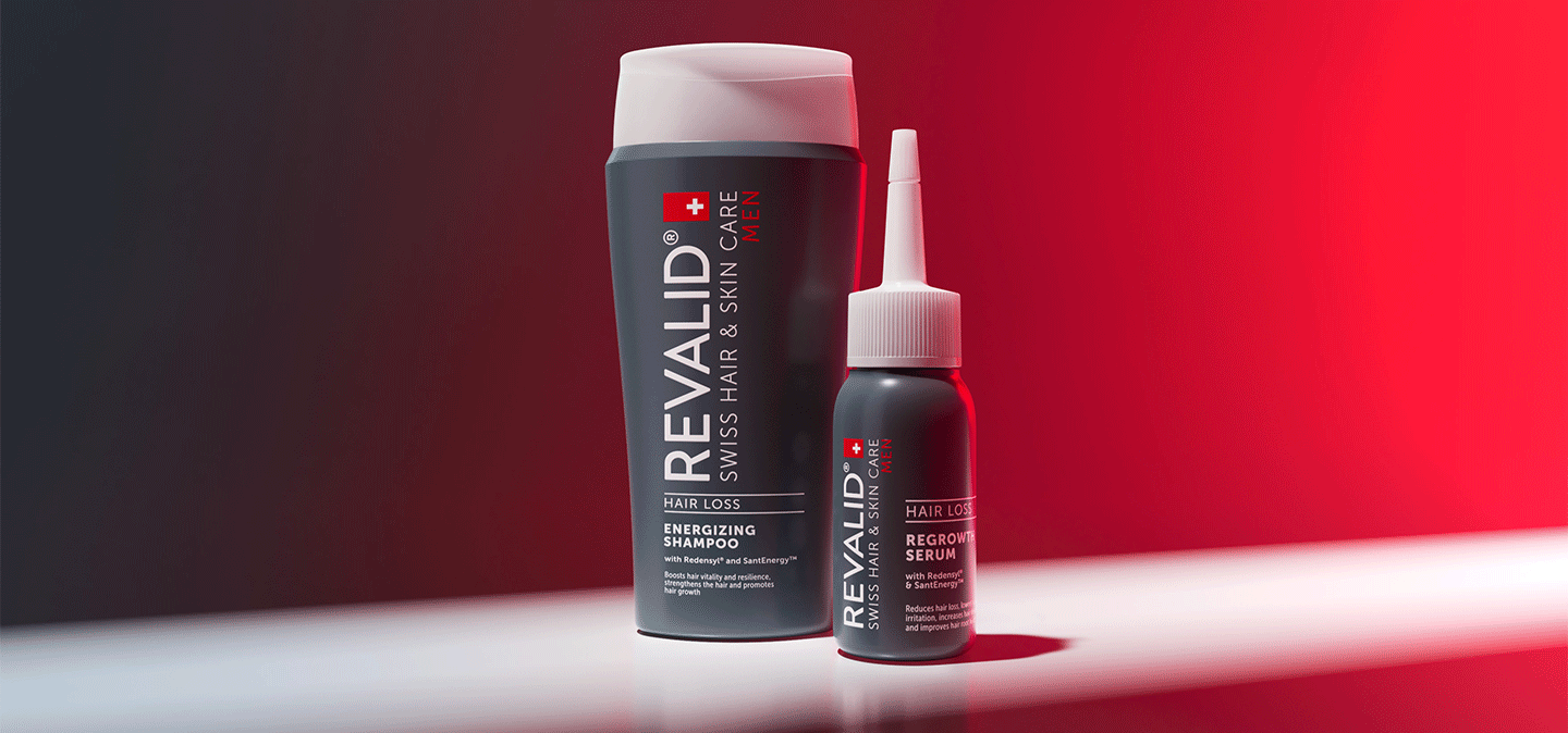 Revalid linija protiv gubitka kose kod muškaraca visokoučinkovit je pristup koji djeluje na faktore povezane s izgledom prorijeđene kose. Sadrži aktivne sastojke Redensyl® i SantEnergy™. Ova švicarska formula pomaže revitalizirati folikule, štiti od oksidativnog stresa i vidljivo povećava gustoću kose.