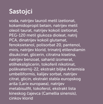 Podržava zdraviji, puniji izgled kose, nježno čisteći vlasište. Ova blaga formula koja ne isušuje kosu pruža dugotrajnu hidrataciju, podržava prirodnu pigmentaciju kose i naglašava prirodan sjaj. Idealan za svakodnevnu upotrebu i pogodan za osjetljivo vlasište.